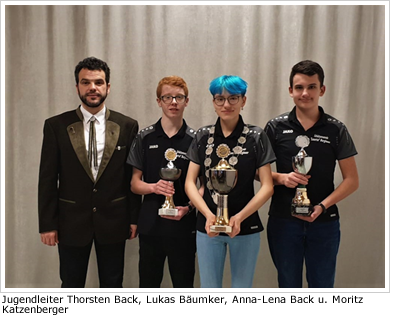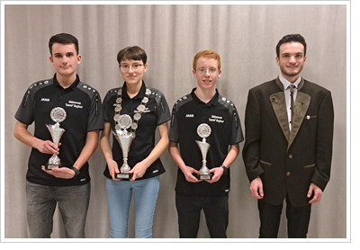 Anna Väth 381:387, Heidi Krug 379:386, Fabian Back 381:381 Stechen 9:7 (1EP), Andrea Gehring 382:380 (1EP), Simon Breunig 355:367. |