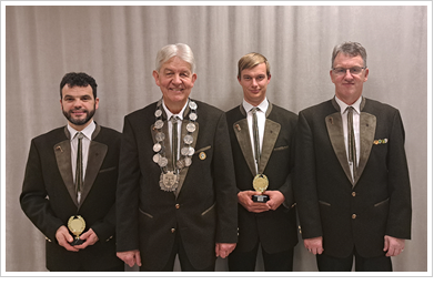 Als 1. Ritter stehen ihm Jugendleiter Thorsten Back (360-Teiler) und als 2. Ritter 2. Schützenmeister Mirco Friedrich (417-Teiler) zur Seite.
