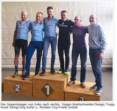 Das Duo Horst Elting/Jörg Kufel vom Team Bikeworld Brand wurde seiner Favoritenrolle gerecht. Mit zwei Schießfehlern und der verbundenen Strafzeit von einer Minute überquerten sie nach 36:36 Minuten als Gesamtsieger die Ziellinie.