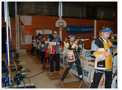 10.04.2005 - Am Sonntag fand auf der Olympia-Schießanlage in München-Hochbrück der Relegationswettkampf für den Klassenerhalt in der Regionalliga-Süd statt. Außer unserer Mannschaft, die als siebtplazierte der vergangenen Saison in diese Ausscheidung musste, qualifizierten sich noch die zwei Erstplazierten der vier Bayernligen. Insgesamt waren also neun Teams am Start, wobei die Aufstiegsregelung besagte, dass nur die zwei besten Mannschaften nach zweimal 40 Schuss in die Regionalliga aufsteigen durften.
