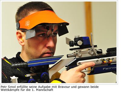 Erstmals mit von der Partie ist dieses Mal der tschechische Nationalkaderschütze Petr Smol, der seinen verhinderten Landsmann Ondrej Rozsypal ersetzt. Petr war bisher viermal für die 2. Mannschaft in der Unterfrankenliga im Einsatz und konnte dort mit guten Ergebnissen überzeugen. Jetzt dürfen wir hoffen, dass er seine gute Form auch am Sonntag bestätigt und für die notwendigen Einzelpunkte sorgen kann.
