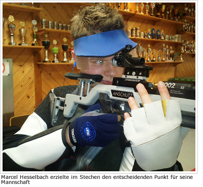 Zunächst hieß der Gegner SG Weihenzell. Beide Mannschaften präsentierten sich auf Augenhöhe und man konnte schon nach den ersten Serien erkennen, dass das eine ganz enge Angelegenheit wird. Julia Wohlfart und Marcel Hesselbach hatten ihre Gegner im Griff und siegten souverän. Andrea Gehring hatte gegen ihre Gegnerin keine Chance, Melanie Werner musste sich, aussichtsreich im Rennen liegend, am Ende doch noch geschlagen geben. So war der Zwischenstand erwartungsgemäß 2:2. Wer als Sieger den Schießstand verlässt, entschied die Spitzenpaarung zwischen Ondrej Rozsypal und Patrick Müller. Der junge Weihenzeller setzte mit seiner schnellen Schießeinlage und sehr guten 392 Ringen unseren tschechischen Nationalkaderschützen gehörig unter Druck. Dieser ließ sich zunächst nicht aus die Ruhe bringen und lag sechs Schuss vor Wettkampfende mit vier Ringen vorne. Plötzlich verlor Ondrej auf einmal seinen Rhythmus, zeigte Nerven, schoss eine Acht-Neun-Neun-Neun-Kombination und vergab mit 391 Ringe den schon sicher geglaubten Sieg für unser Team. „Einem so routinierten Schützen wie Ondrej Rozsypal darf so etwas nicht passieren“, haderte Mannschaftsführer Wolfgang Back mit der Niederlage und ergänzte: „ Aber gerade solche Geschehnisse machen das Schießen in diesen Klassen unheimlich spannend und unberechenbar“.