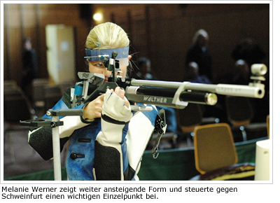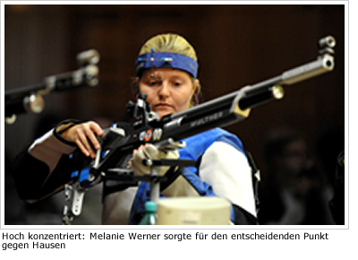 Für den siegbringenden Punkt sorgte Franziska Kleinhenz auf Position drei. Sie setzte sich durch ihre schnellere Schießeinlage mit 377:372 Ringen gegen ihren Gegner klar durch und sicherte somit den ersten Saisonsieg.
