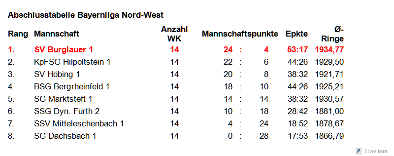 Burglauer: Karsten Beck 379, Klara Beck 387, Andrea Gehring 379, Linus Diemer 378, Melanie Werner 385. |
