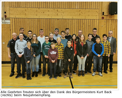 06.01.2020 - Zum Neujahrsempfang und zur Sportlerehrung lud Bürgermeister Kurt Back ins Schützenhaus ein. Der Empfang soll eine Wertschätzung der Ehrenamtsarbeit in der Gemeinde darstellen, sagte Back. Besonders die Vereinsvorstände und die helfenden Hände im Hintergrund wollte er mit der Einladung ehren und ihnen Dank sagen.