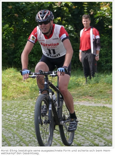 In der Herrenklasse gingen gleich fünf Fahrer aus unseren Reihen an den Start. Horst Elting sicherte sich mit einer fehlerfreien Schießeinlage den 3. Platz. Ralf Markert fuhr auf den 6. Platz vor Tino Haßmüller (Platz 9), Martin Weber (Platz 18) und Marco Haßmüller (Platz 19).